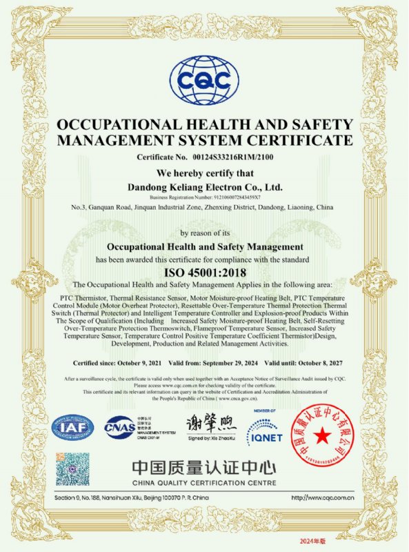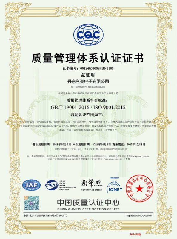 丹東科亮電子有限公司主要生產經營電機保護PTC熱敏電阻、電機防潮加熱帶、電機保護熱敏開關、電機軸承及線圈溫度數字顯示傳感器,以及與傳感器配套的智能溫度顯示儀表等產品,并可根據用戶需求,可以特殊定制。